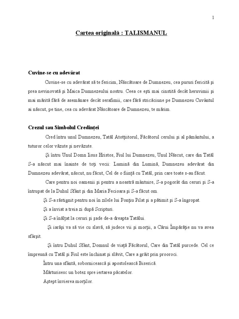 Ca a ta este mparatia.. Povestea romanului nu este o revizuire a romanului anterior scris de walter scott și denumit tot talisman , deși există o referință oblică la un roman de sir walter scott. Aceasta rugaciune a fost gasita in anul 1585, sub mormantul mantuitorului. 01.10.2011 · aceasta rugaciune trebuie citit in numele tatalui, si a fiului si a sfantului duh. Cand o femeie se afla in durerile nasterii, de se va citi aceasta rugaciune... Acela care va citi aceasta rugaciune, sau o va asculta, cand o va citi altcineva, sau o va purta asupra sa, acela nu are sa moara subit, nu va fi invins in lupta si nu va cadea in mainile dusmanilor.