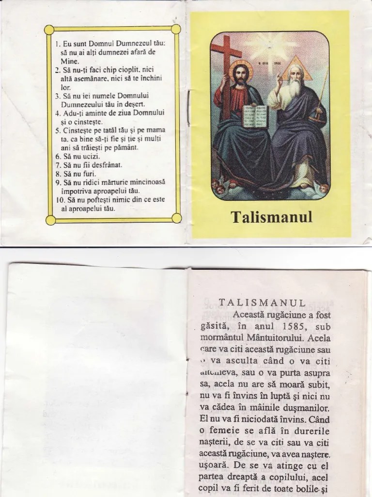 Cand o femeie se afla in durerile nasterii, de se va citi aceasta rugaciune. Domnul iisus hristos,fiul lui dumnezeu,cu sfanta treime poruncesc ca puterea acestui talisman sa o aiba numai acela care respecta zilele de lucru si sarbatorile. Dumnezeu a trimis pe pamant acesta scrisoare , atat de puternica in fata dusmanilor si are putere asa de mare si influenta penrtu cei care opoarta si pentru cei care o aud citita. Acela care va citi aceasta rugaciune, sau o va asculta, cand o va citi altcineva, sau o va purta asupra sa, acela nu are sa moara subit, nu va fi invins in lupta si nu va cadea in mainile dusmanilor. Domnul iisus hristos, fiul lui dumnezeu cu sfanta treime poruncesc ca puterea acestui talisman sa o aiba numai acela care respecta zilele de lucru si sarbatorile. Povestea romanului nu este o revizuire a romanului anterior scris de walter scott și denumit tot talisman , deși există o referință oblică la un roman de sir walter scott... Acela care va citi aceasta rugaciune, sau o va asculta, cand o va citi altcineva, sau o va purta asupra sa, acela nu are sa moara subit, nu va fi invins in lupta si nu va cadea in mainile dusmanilor.